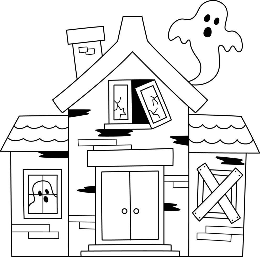 Haunted House Halloween Coloring Page Isolated 7528303 Vector Art At Vecteezy