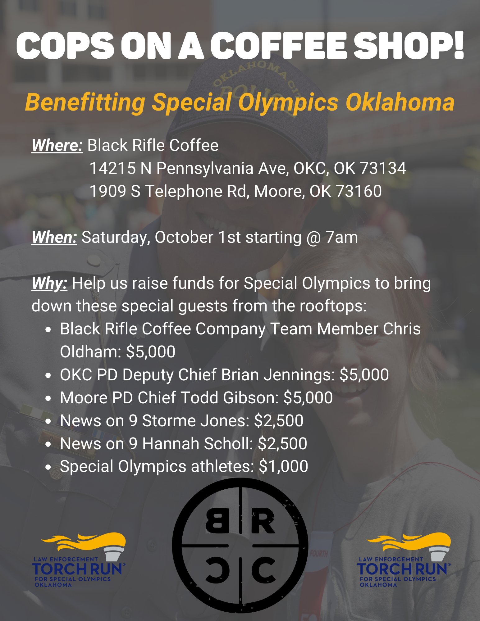Special Olympics Oklahoma On Twitter Join Us Next Saturday October 1 At Blckriflecoffee Locations In Okc And Moore For Our First Ever Oklahoma Letr Cops On A Coffee Shop Stormejones Hannahschollwx Okcpd